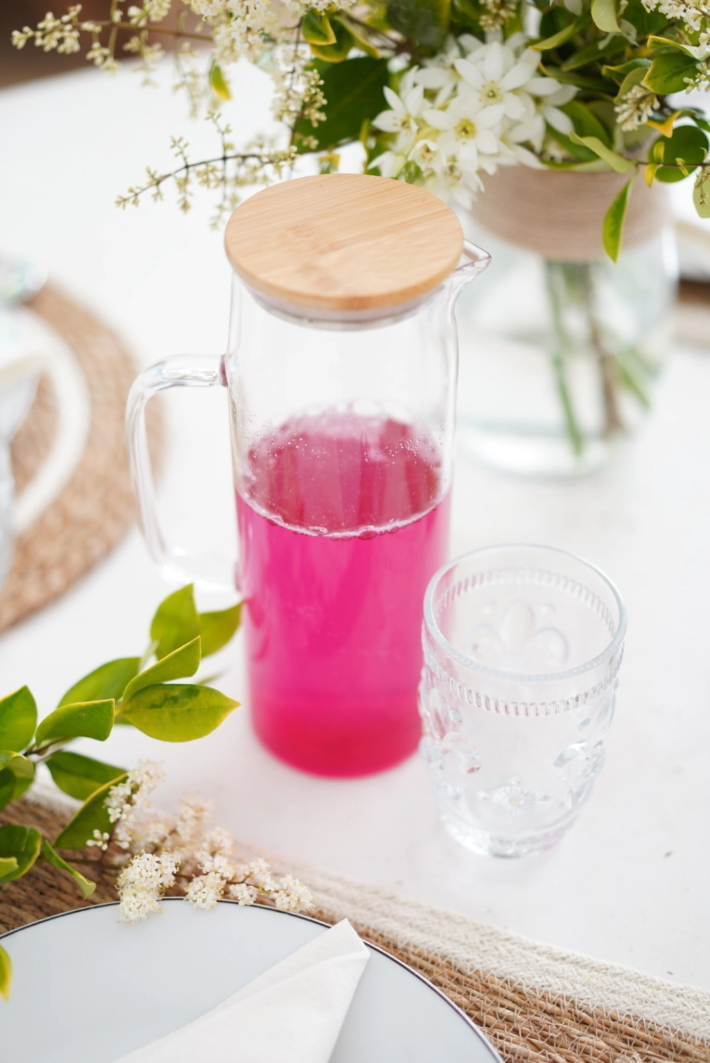 Jarra de vidrio borosilicato con tapa de bamboo y acero.